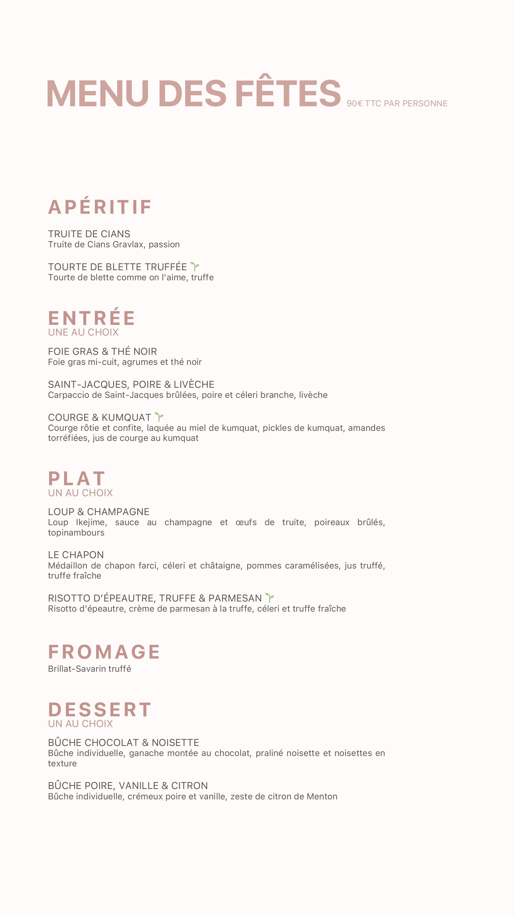 Menu Fêtes de fin d'année